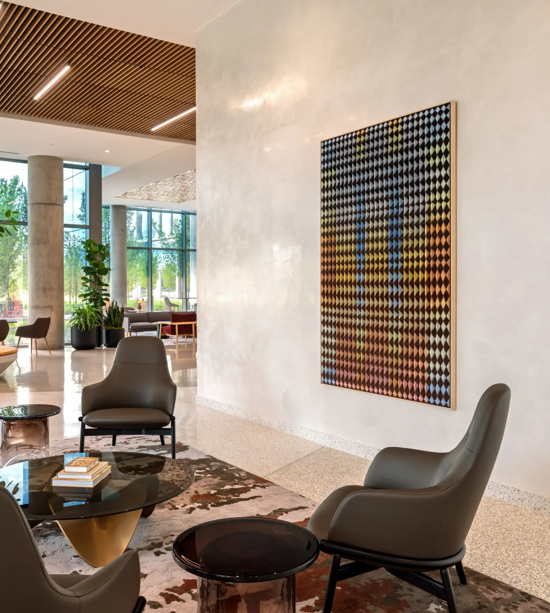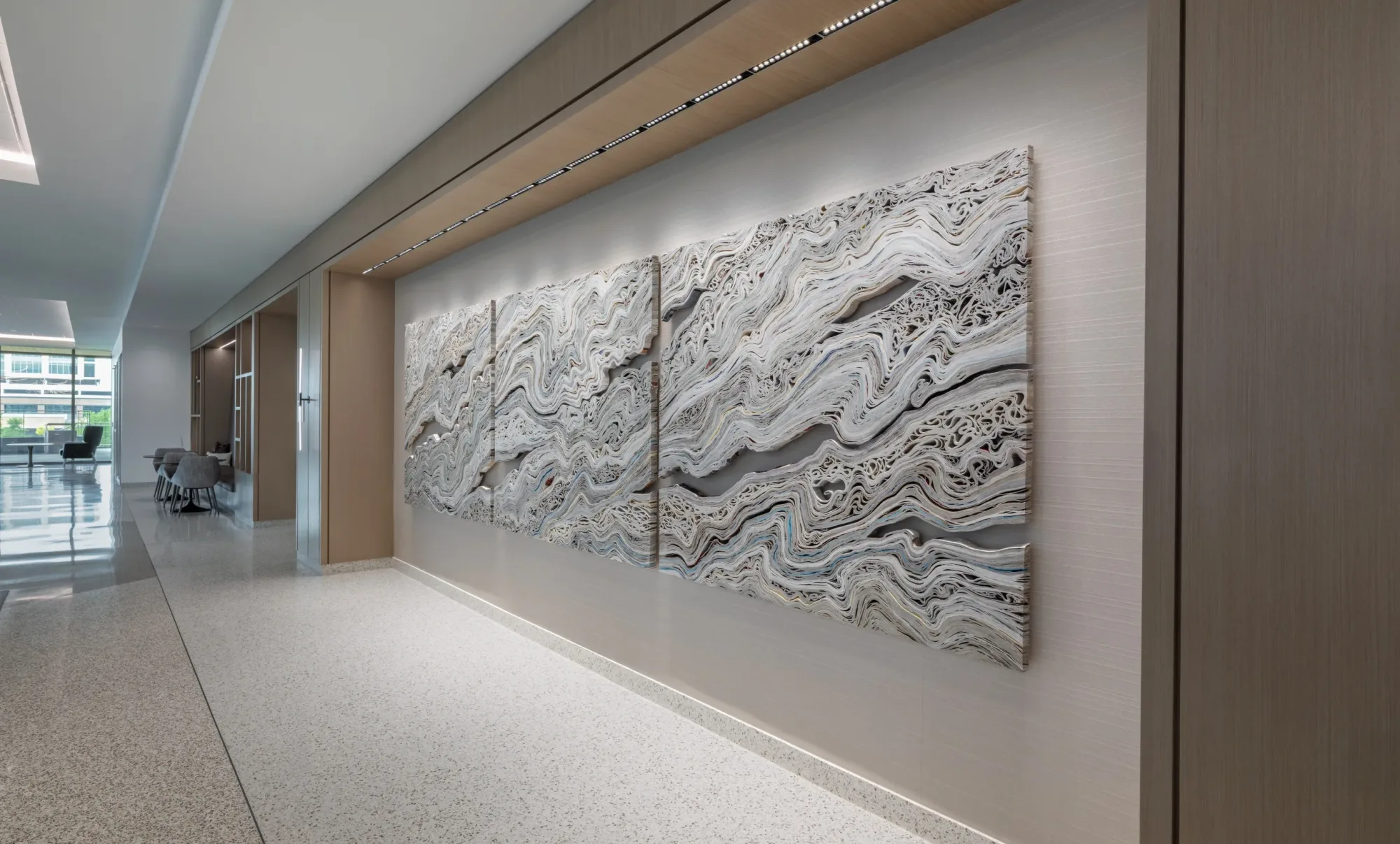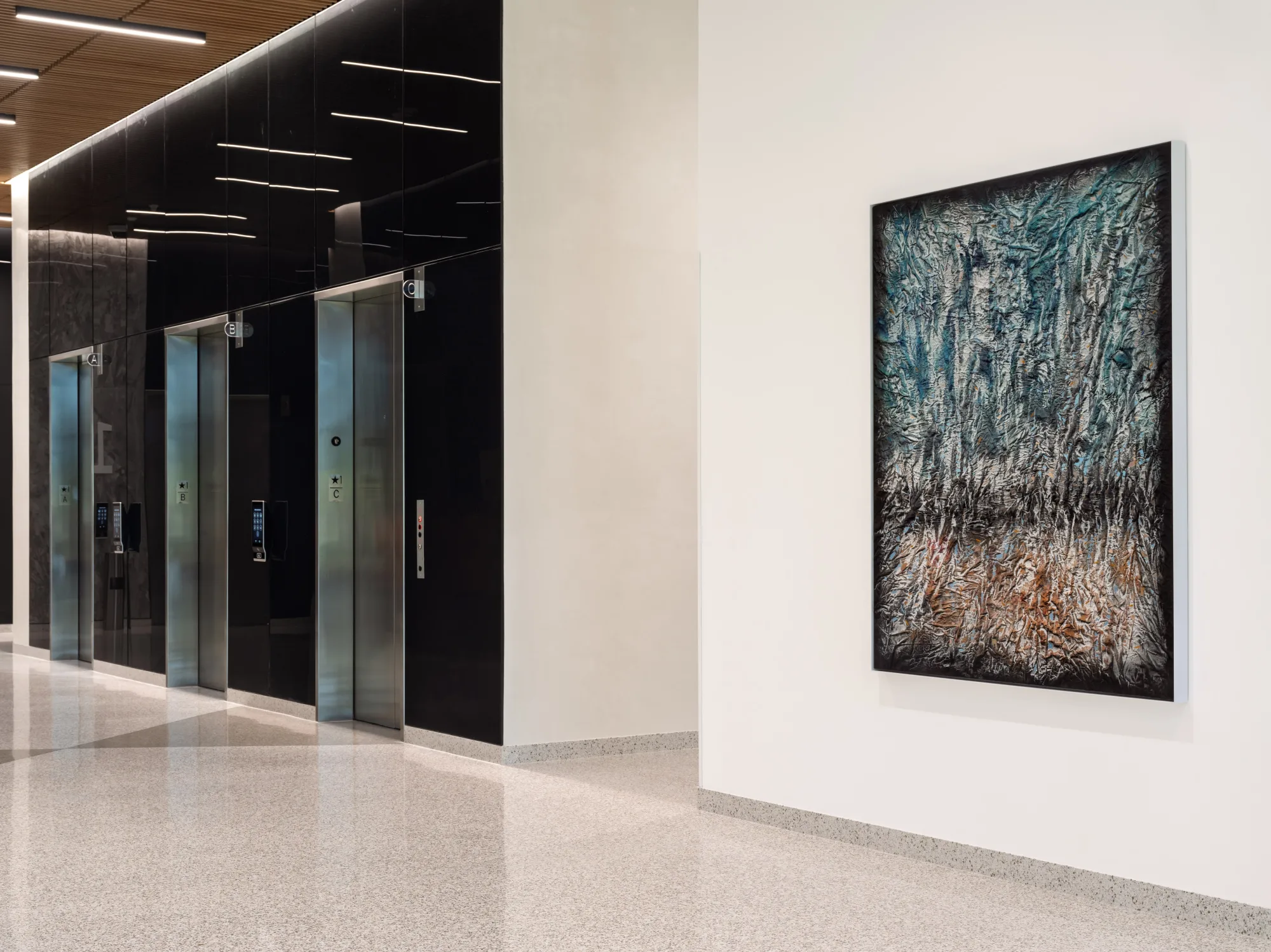 Located throughout hospitality-driven spaces including gathering points, pre-function areas, and amenity corridors, this project spans two buildings which also support multi-floor office space. The artwork draws from themes of arts and nature and culture and identity to create a cohesive visual thread across the property. Alongside commissioning new work from artists, we integrated select pieces from the client’s existing collection. The examples shared here highlight key moments within a much larger installation, capturing the sense of connection and place that defines the project.