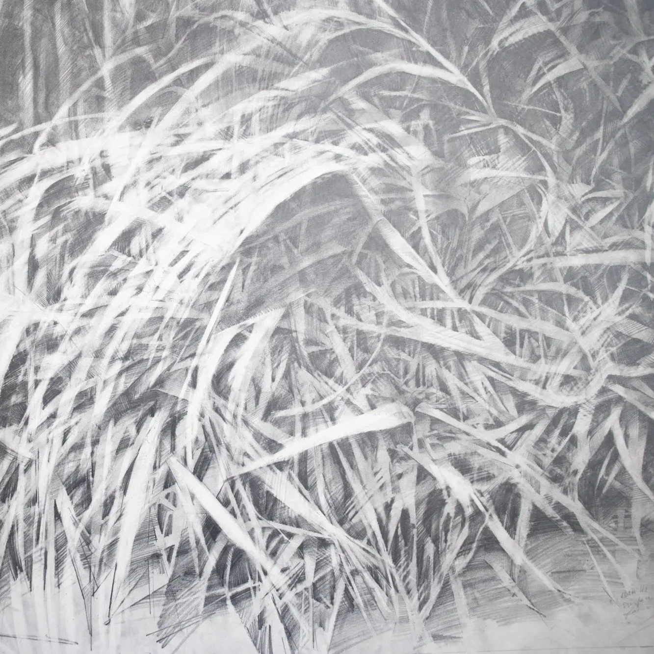Guided by nature, Rachel Wolfson Smith’s drawings explore emotional landscapes, labor, and care through a personal lens. She takes inspiration from gestures, historical contexts, and moments of non-verbal communication, blending cycles of beauty, overwhelm, and lightness into layered graphite marks. These marks serve as both artifacts and reflections of an ongoing evolution.